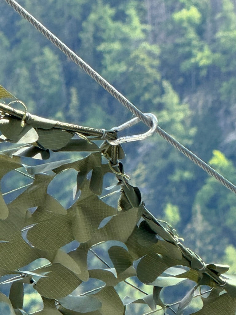 Recorre todo el contorno de la red y le da estructura. Evita que los bordes se deshilachen y permite tensarla con firmeza en postes, árboles o estructuras. Además, combina con el mismo tono del camuflaje, manteniendo una estética uniforme, única en el mercado argentino.